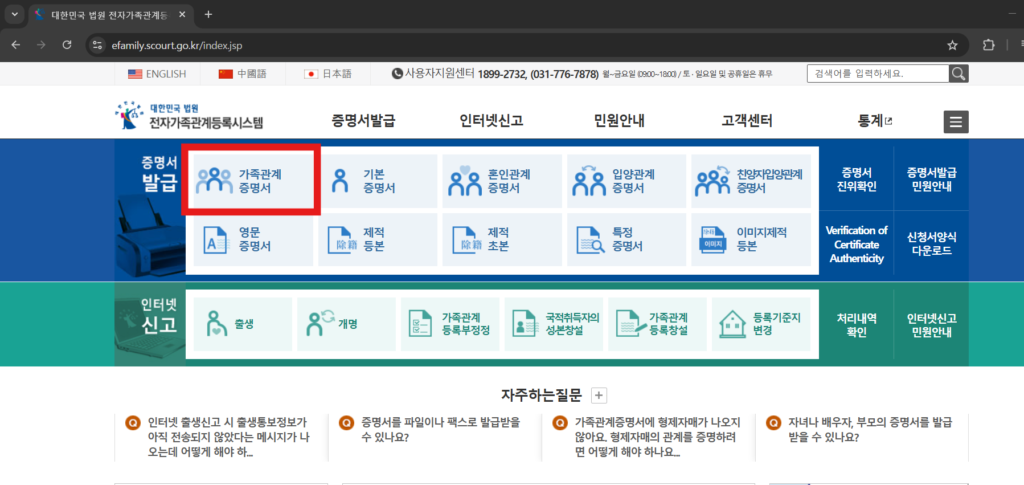 여기서도 가족관계증명서 온라인발급을 간편하게 진행할 수 있습니다.