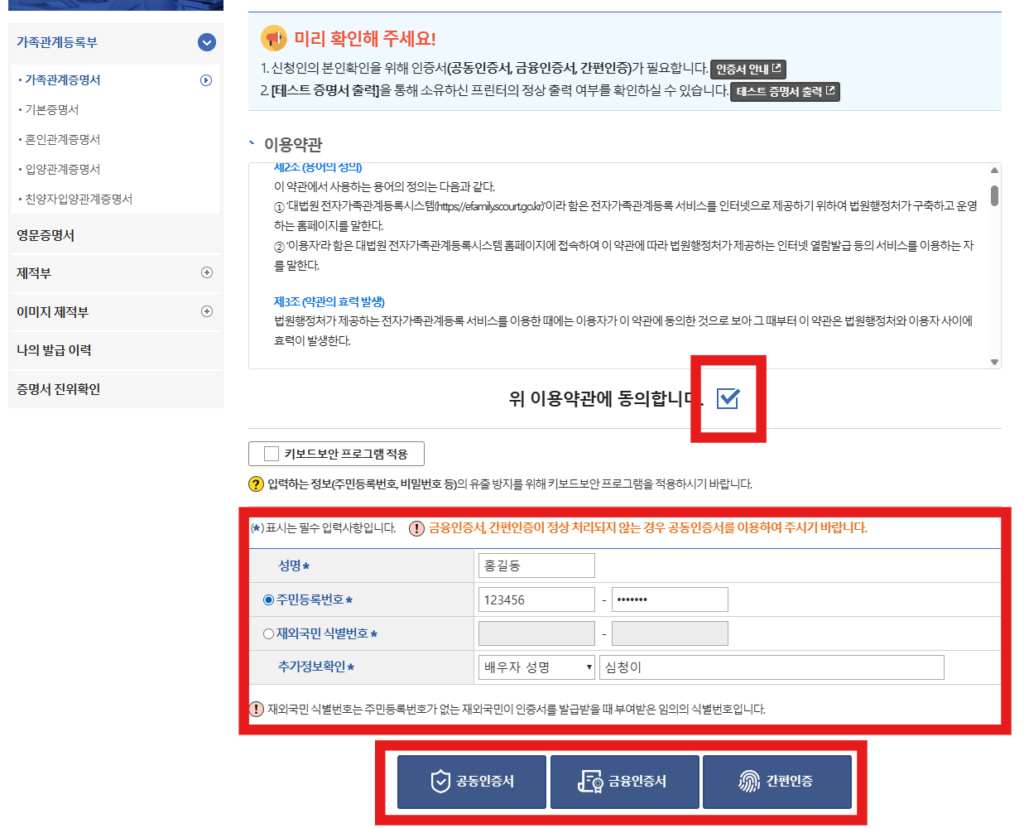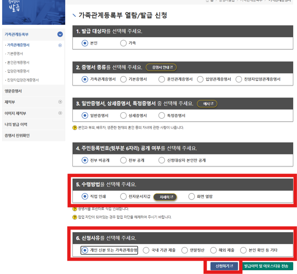 원하는 경우 가족관계증명서 온라인발급 선택도 가능하다.