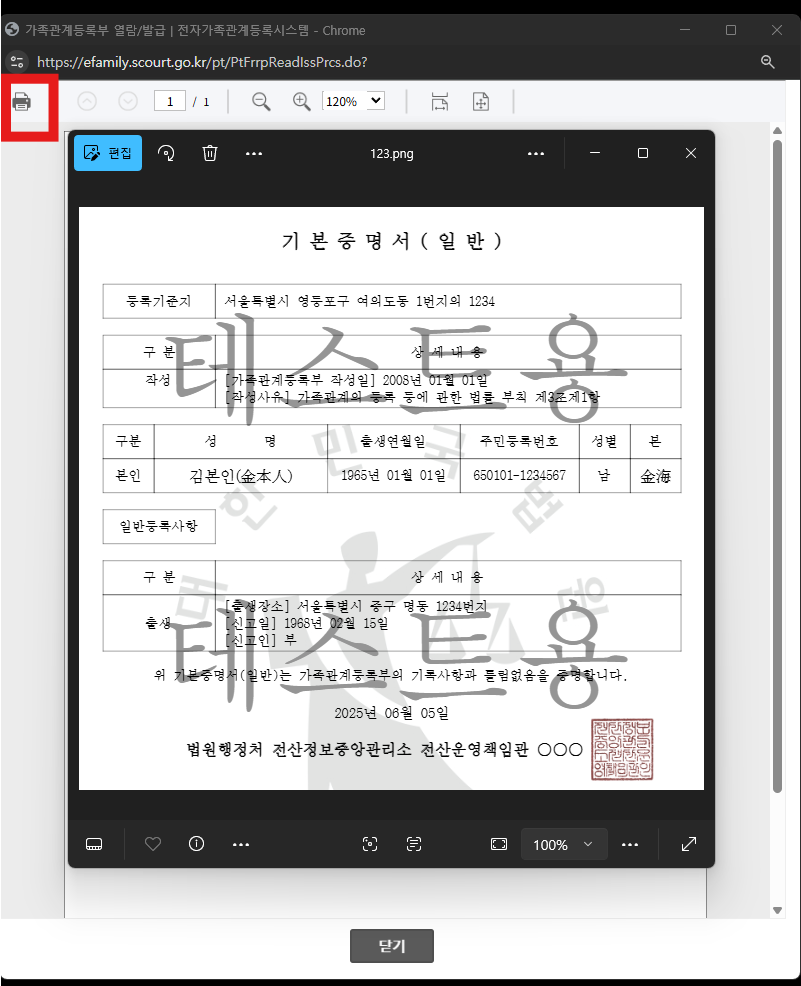 프린터가 없어도 가족관계증명서 온라인발급은 가능합니다. 발급 화면에서 인쇄 단계로 넘어간 뒤 “대상 프린터를 PDF로 저장” 형태로 진행하면 파일로 보관할 수 있습니다.