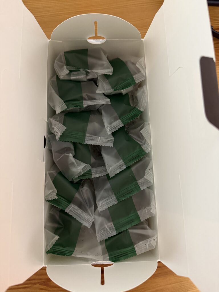 이 구성은 선물할 때 장점이 큽니다. 예를 들어 회사에 6명 정도 나눠주려면 1박스로도 충분하고, 조금 넉넉히 돌리려면 2박스가 딱 떨어집니다. 무엇보다 개별 포장이라 이동 중에 눌리거나 위생 걱정이 덜합니다(실제로 박스를 열어보면 한 개씩 포장되어 정리되어 있어요).