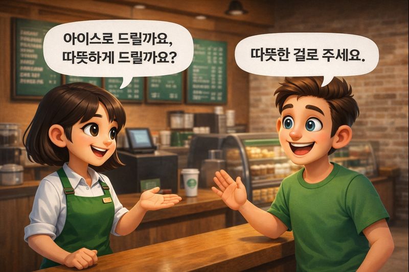 - 따뜻한 걸로 주세요. — Make it hot, please.
